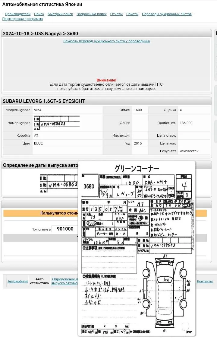 Аукцион USS Nagoya Лот 3680Аукцион 4 баллаНомер кузова для проверки VM4-058653Ссылка на лот в алеадоhttps://auctions.aleado.ru/stats/?p=project/lot&id=319718032&sБесплатно в статистике✅Комплектация 1.6GT-S EYESIGHT🔥Поможем с отправкой в любой регион РФ 🇷🇺